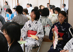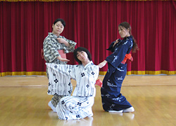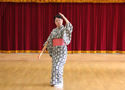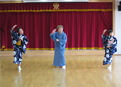 浴衣ざらいは、上大岡駅ちかくの平和祈念館で行いました。去年より参加人数が多く、広い会場で、日ごろの成果を披露いたしました。